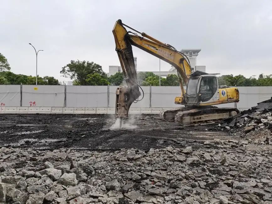 在拆除水泥路面的时候,经常会看到施工队用破碎锤进行锤击敲打,将水泥敲碎。然而,这样施工有许多缺点。一是敲击声音大,影响周边群众,二是形成的水泥石块很大,运输难,还需后续处理。